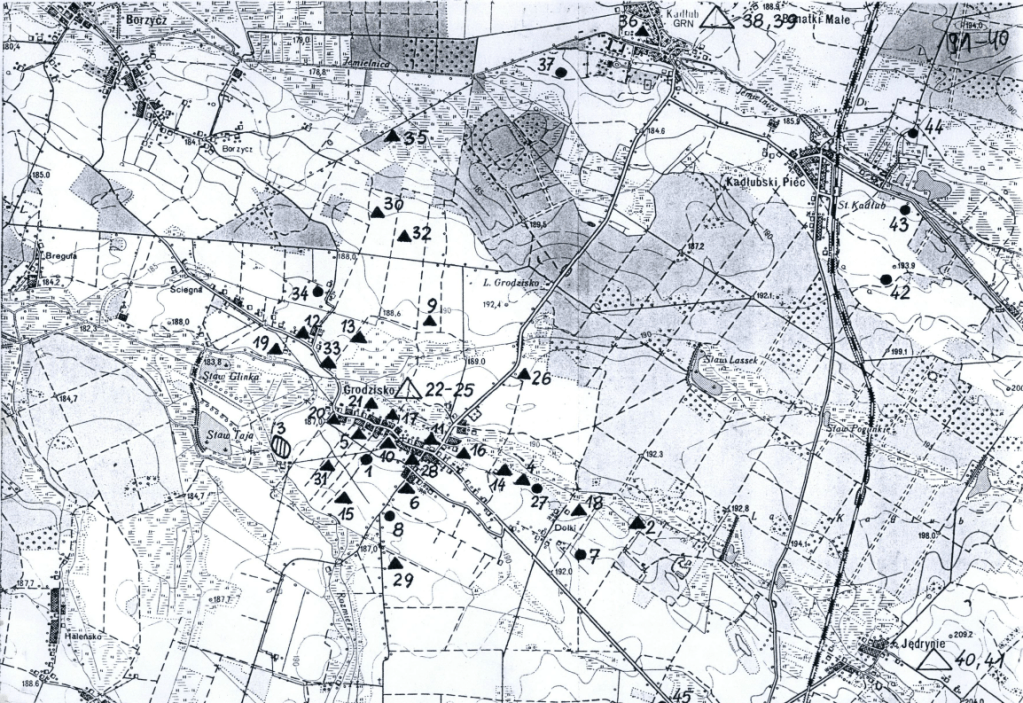 Poniżej mapa ze stanowiskami archeologicznymi wg zabytek.pl