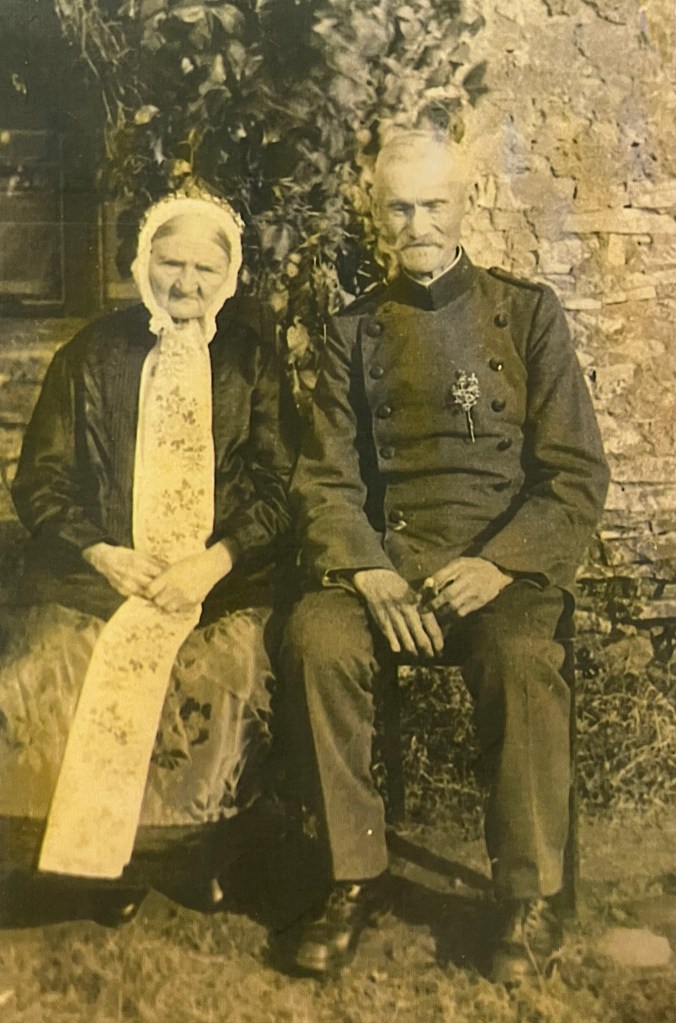 Właśnie dzięki uprzejmości Państwa Oblonczek dostałam zdjęcie leśniczego lasów hrabiowskich Roberta Pytla, który jest namalowany jak klęczy z bronią z prawej. Pytel urodził się w Izbicku w roku 1871 jako syn kowala, w roku 1894 ożenił się w Kadłubie z Franciską Ploch. Oto oni na zdjęciu.