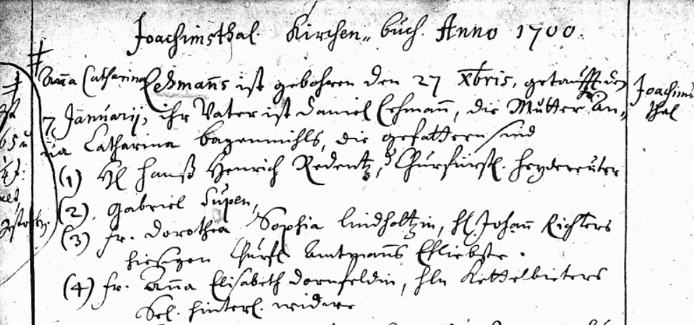 Akta kościelne z Peitz, gdzie rezydowała jego rodzina, nie zachowały się z tego okresu. Podobnie jak księgi metrykalne z Krosna Odrzańskiego, gdzie jego ojciec Philipp był w tym okresie łowczym. Z tego powodu może nigdy nie odnajdzie się akt jego urodzenia.