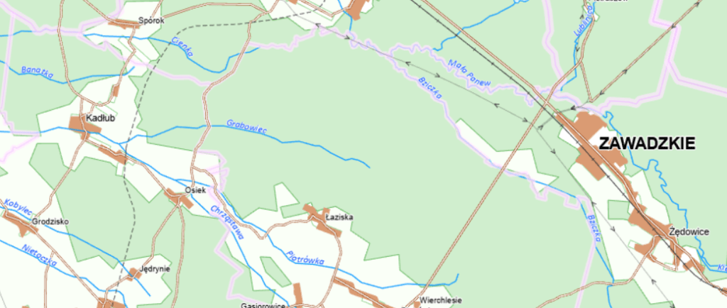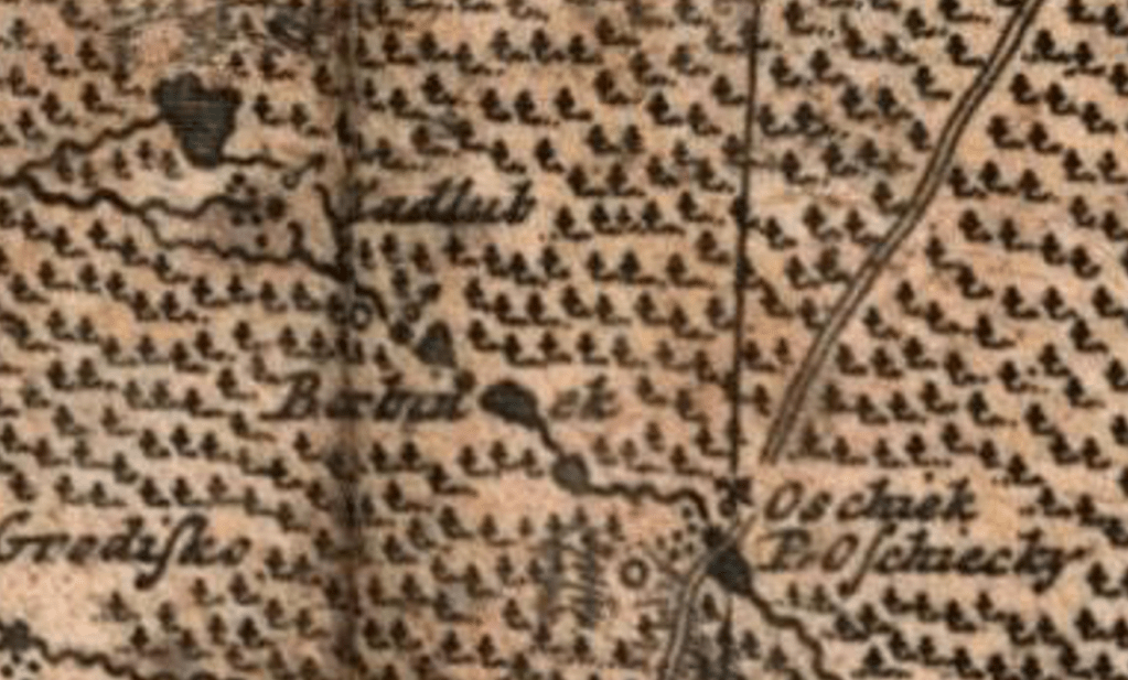 Natomiast mapa z 1827 pokazuje, jak nasi przodkowie radzili sobie z wylewającą wodą: widać tu cały system wałów spiętrzających wodę na terenach leśnych i mokrych łąkach.