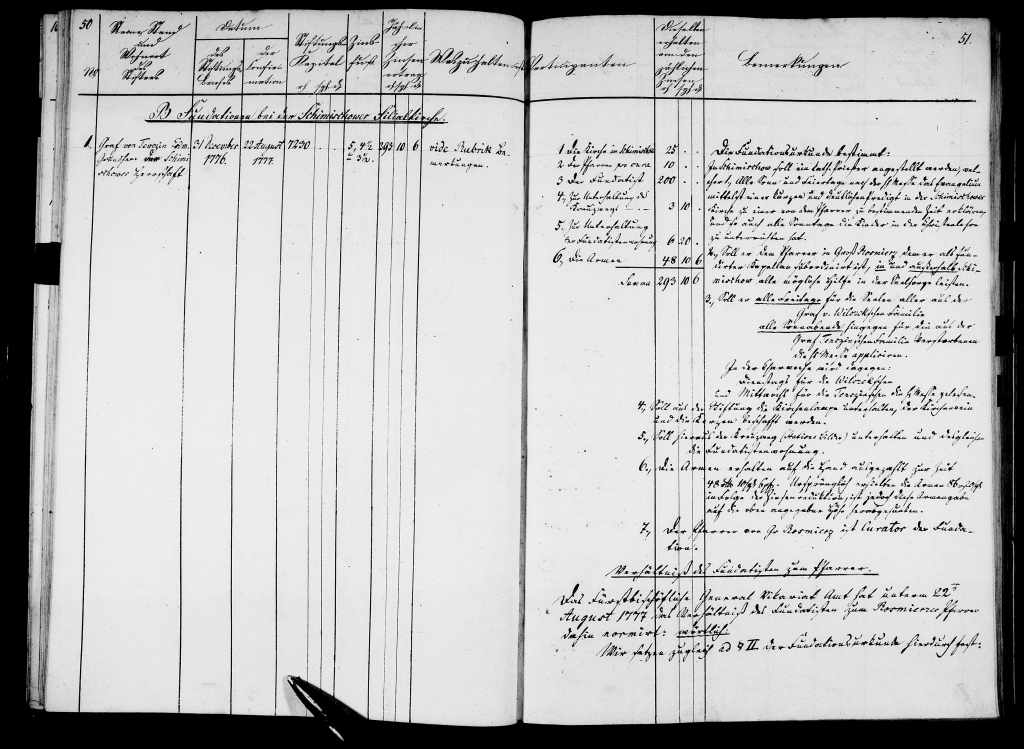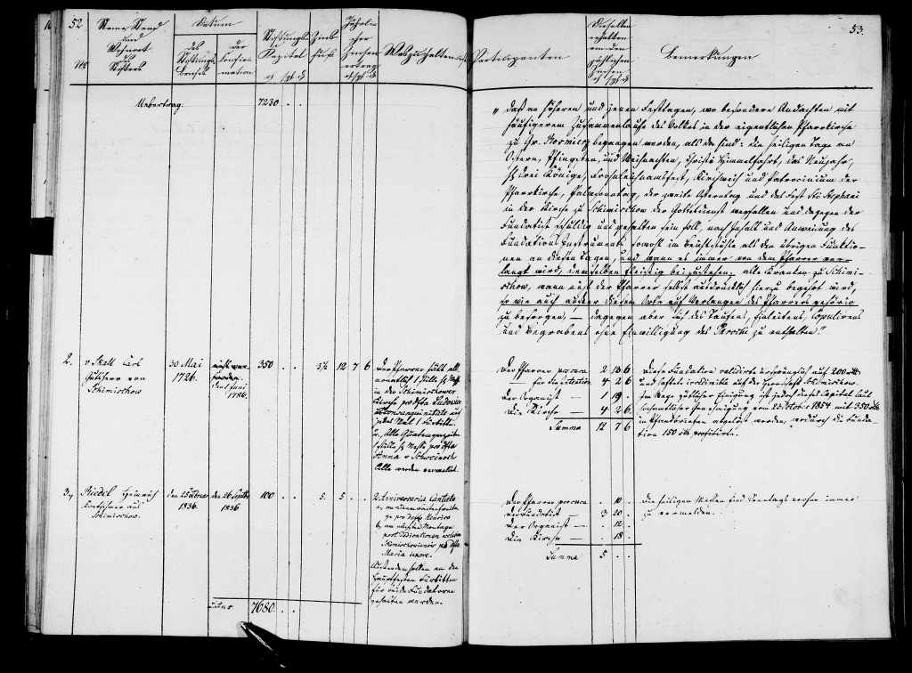 Satze Berg- und Hüttenwesen unterder ausdrücklichen Bedingung genehmiget, daß er binnen 14 Tagen fertig sein. müsse. Der Zeitpunkt zu diesem Umbau kamfrüher als ich noch vermuthete, und ehe ich noch mit allen Vorarbeiten fertig würden 12ten May begann das Holzflößen durch das Krascheower Wehe, das schon ohnedieß niedrige Wasser fiel bei der Arche dergestalt, daß weder der Plettienenhammer noch die beiden Rohrhämmer arbeiten konnten, ich wartete den folgenden Tag ab, indem man ein Steigen