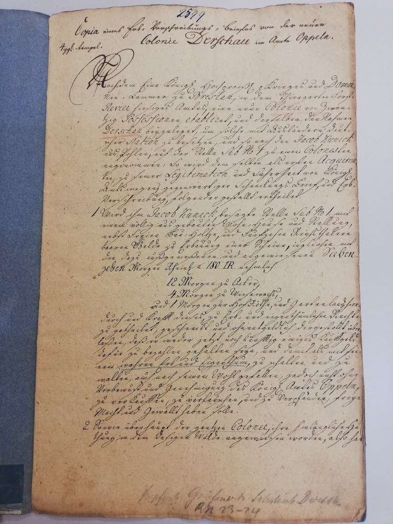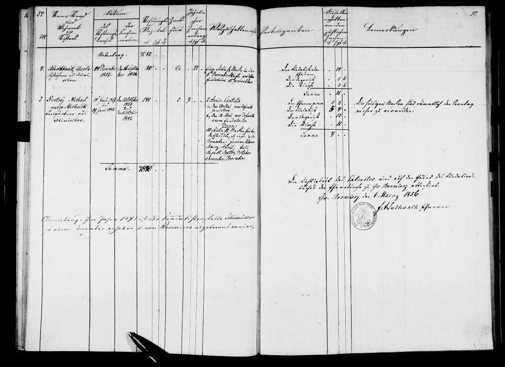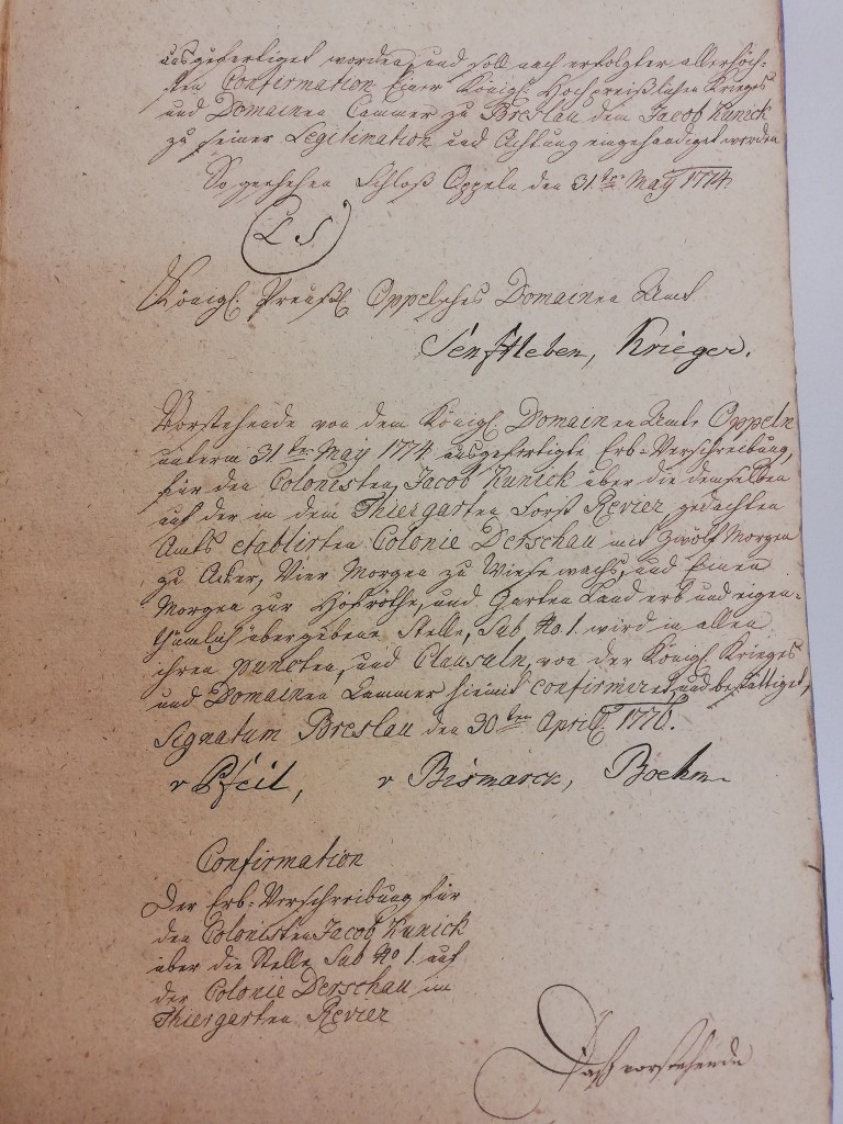 Den Umbau der Krescheower Arche unterblieb in 1811 und in 1812. Das wichtige Jahr 1813 konnte er jedoch nicht unterbleiben, weil die Armatur Fabrication, die in diesem Jahre so nothwendig geworden war in Stocken gerathen sein. würde. Noch zur rechten Zeit entGeh.Staatsarchiv schloß ich mich das Versprechen zu machen. 421 IIt Rep. 120 2.2855 das nöthigste an dieser Arche während vierzehn Tagen umzubauen, und untern Mss. Nr. 324. 36te Martz 1813 würde diesen Umbau von (mit 8 Bet. teidm.) der Hohen General Verwaltung für das Satz.