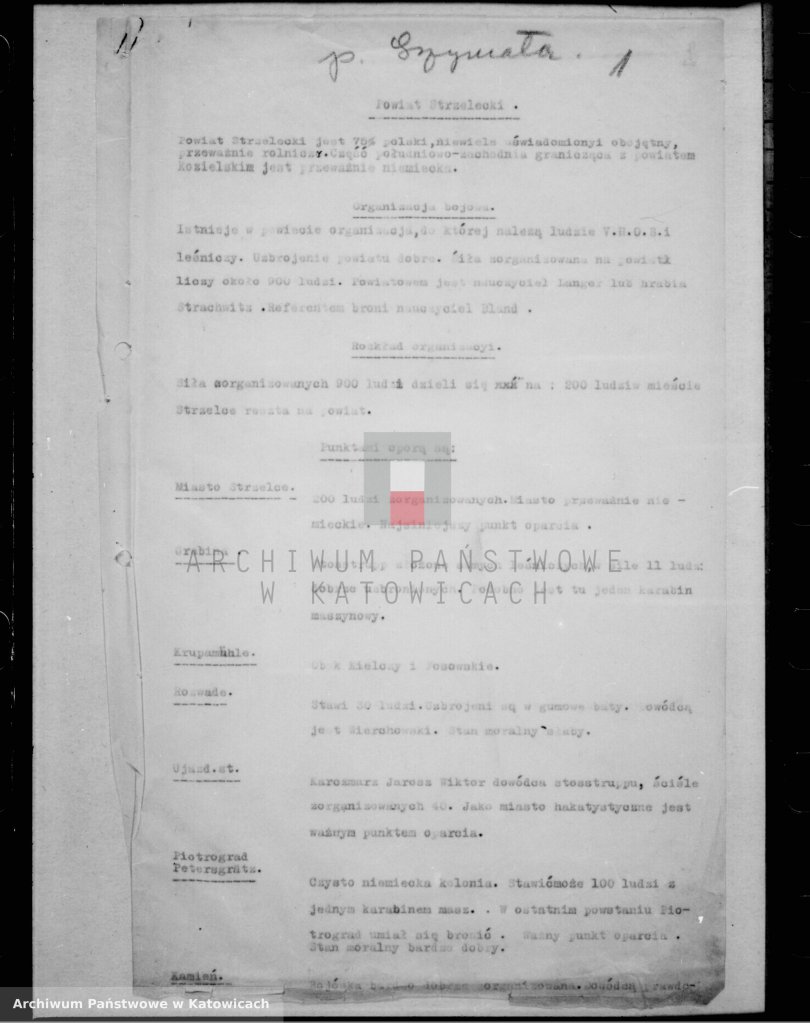 Raport wywiadowczy Polskiego Komitetu Plebiscytowego, sprawozdanie sytuacyjne z powiatu Strzeleckiego 1920 rok: