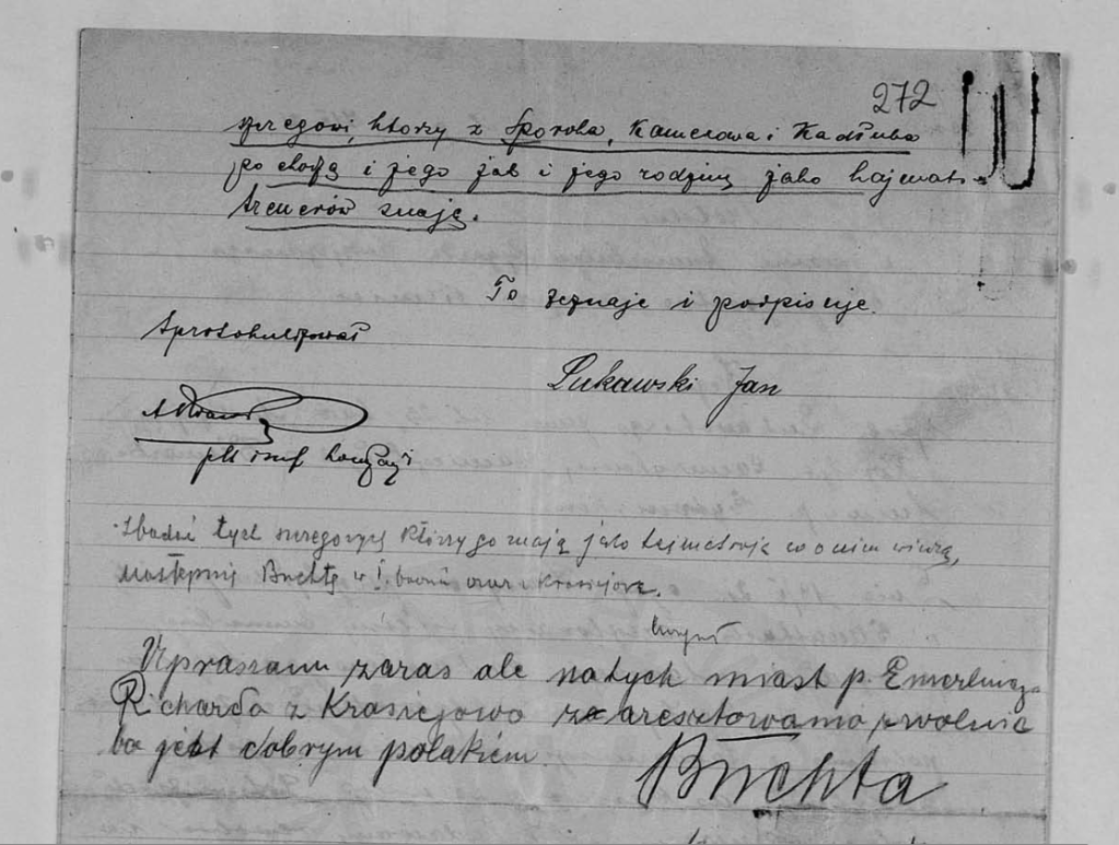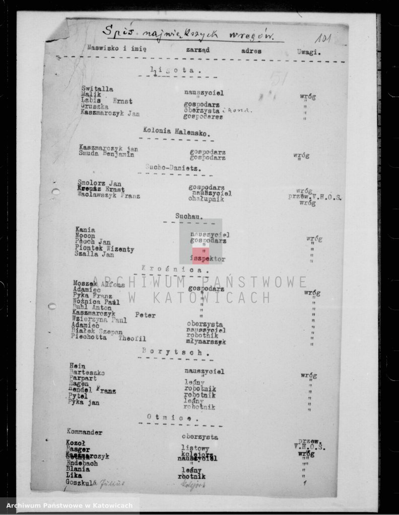 Powyżej lista wrogów, prawdopodobnie sporządzona przez kogoś z miejscowości Kadłub lub okolicy, kto był członkiem POW.
