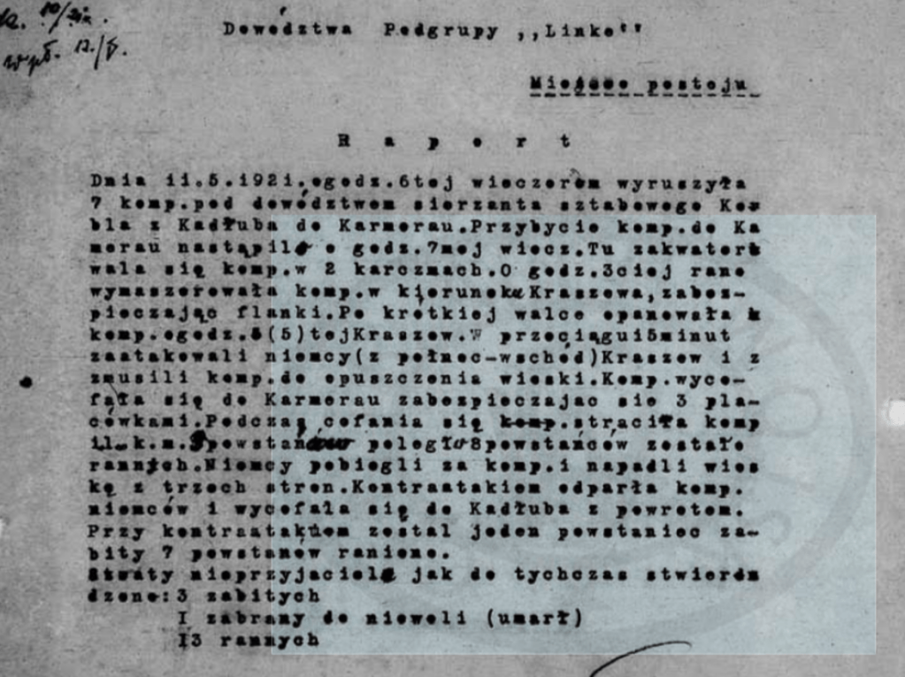 Archiwum Wojskowe udostępniło skany dokumentów Polskiej Organizacji Wojskowej, która koordynowała działania powstańców w roku 1921 na Śląsku. Na podstawie tych dokumentów, można zrekonstruować grozę tych kilku dni w czerwcu 1921.