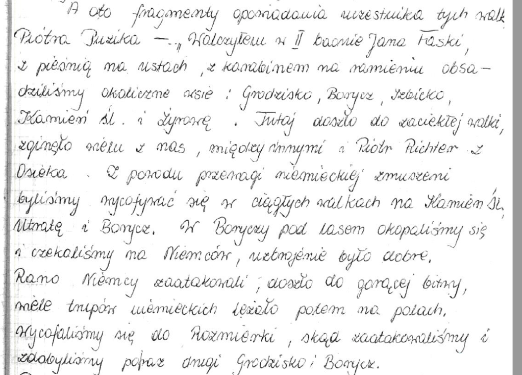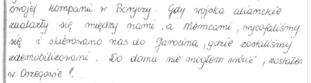 Również w lesie byliśmy często ostrzeliwani. Pojedynczo i grupkami przedarliśmy się do Ozimka. W moim mieszkaniu powybijano okna, zerwano podłogi, zbito obrazy. Książki i pisma podarto, wszystko zabrudzono ludzkim kałem. Tylko większe meble pozostały, ich odtransportowanie zaplanowano na później, przeszkodził temu Selbstschutz.”