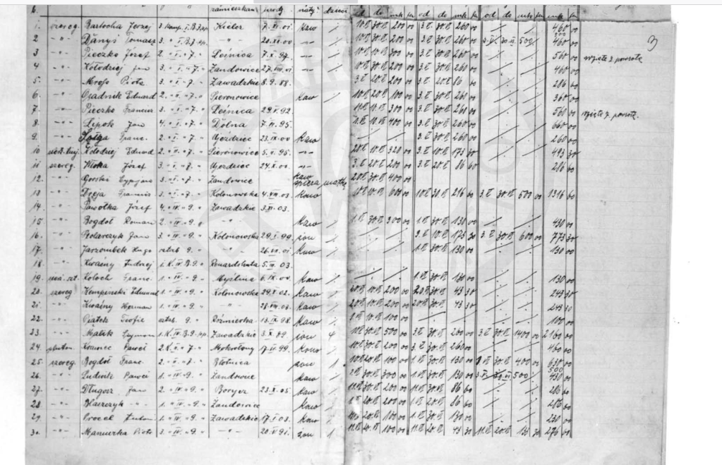 Poniżej listy wypłaty żołdu dla powstańców z powiatu strzeleckiego (źródło archiwum wojskowe).