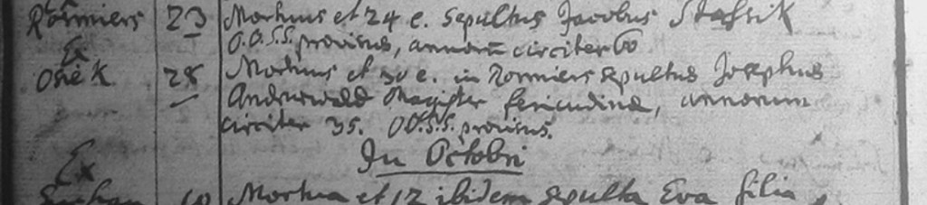 Inny wpis z księgi kościelnej wskazuje na osobę innego mistrza hutniczego. W roku 1762 w Kadłubie umiera Jacob Anderwald, magister ferricudina, czyli mistrz hutniczy, w wieku 90 lat, pochodzący ze Styrii w Austrii.