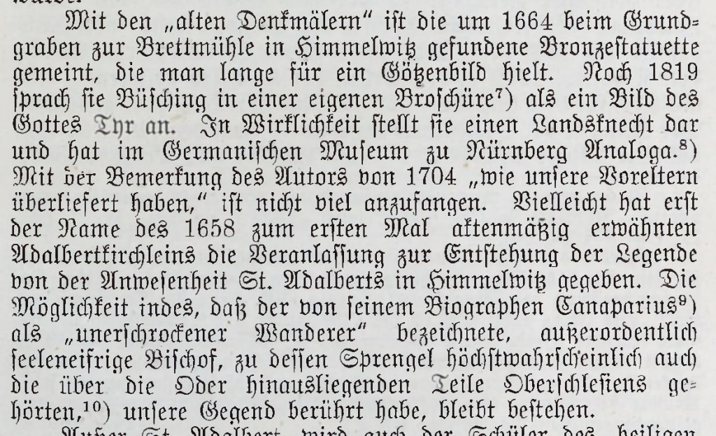Natomiast Alfons Nowack w swojej publikacji „Geschichte der Pfarrei Gross Strehlitz bis 1795” z roku 1923 opisuje, że figurkę znaleziono podczas wykopów pod budowę tartaku napędzanego kołem wodnym w Jemielnicy w roku 1664. Zaprzecza on poprzednim teoriom i zaznacza, że figurka jest nowożytna, podobna do figurki będącej w zasobach Deutsches Nationalmuseum w Nürnberg a przedstawiającego żołnierza.