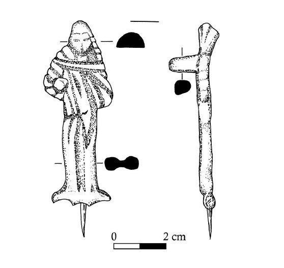 rekonstrukcja figurki wykonana przez Norberta Waclawczyka z Inicjatywa Społeczna Moreantiqua, znajdująca się w urzędzie gminy Jemielnica rysunek figurki z publikacji Büschinga